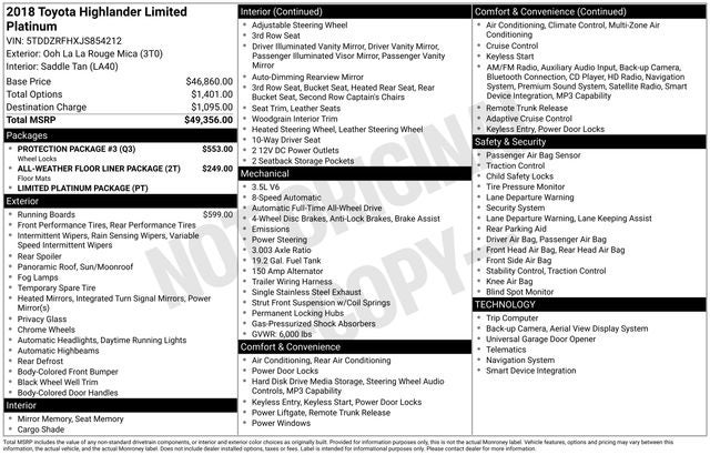 2018 Toyota Highlander Limited Platinum