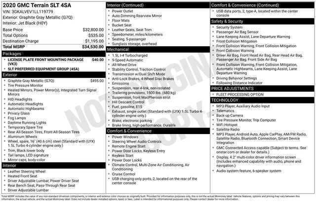 INCLUDES PREPAID MAINTENANCE, AWD. Graphite Gray Metallic 2020 GMC Terrain SLT AWD 9-Speed Automatic 1.5L DOHC