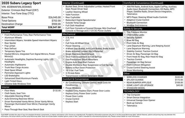 2020 Subaru Legacy 2.5i Sport